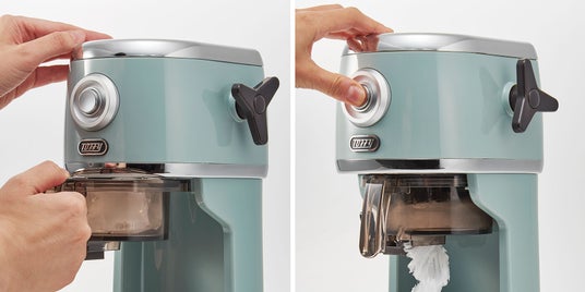 「Toffy コンパクト電動ふわふわかき氷器」は、おうちで「かき氷屋さん気分」が味わえる電動かき氷器です。刃の調節レバーで氷の細かさを無段階に調節することができ、ふんわり口どけなめらかなかき氷から、さらさらとしたかき氷まで、お好みの食感のかき氷を作ることができます。牛乳やジュースなどを凍らせた味付きかき氷や、市販の冷凍フルーツも使用でき、また、ふたつの味を1度に削れる製氷パーツが付属しているため、ハーフ氷やミックス氷などバリエーション豊かなかき氷をお楽しみいただけます。今回、人気のペールアクアに追加となる新色は「ラベンダーミスト」と「ミルキーホワイト」。どこか懐かしいレトロさにこだわったデザインはそのままに、夏時間を彩る新色の登場です。