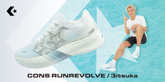 コンバースのランニングシューズライン「コンバース ランニング(CONVERSE RUNNING)」より、ランニングエバンジェリストの三津家貴也氏と共同開発した新作モデル「CONS RUNREVOLVE / 3itsuka」、「CONS RUNREVOLVE」と、「CONS RUNSLASH II」が、3月下旬より順次発売いたします。