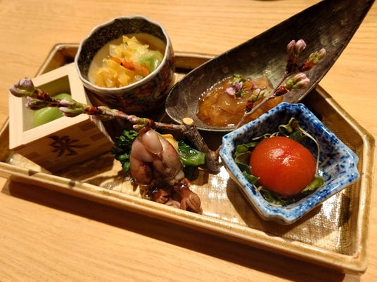 また、寿司屋であるものの魚介類だけでなく農業分野の生産者との繋がりを表現するために、惠万コースでは握りだけでなく八寸や一品料理を提供しております。