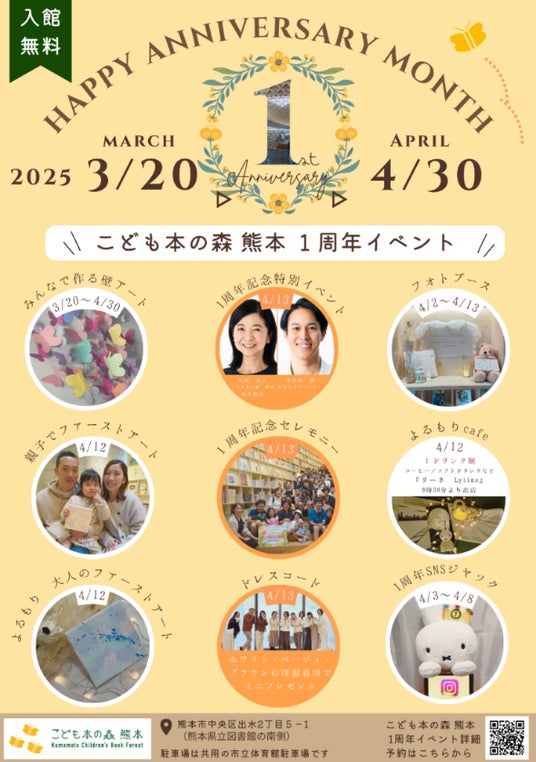 世界的建築家の安藤忠雄さんが熊本県(知事:木村敬)に寄贈し、昨年開館した「こども本の森 熊本」が、2025年4月8日(火)に開館1周年を迎えます。これを記念し、4月30日(水)までの約一か月間、「こども本の森 熊本」1周年記念イベントを開催します。