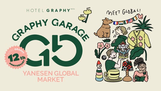 「GRAPHY GARAGE」は、昨年4月に11周年を記念して開催した谷根千のローカル店がホテルに集まったマーケットイベント「GRAPHY GARAGE- Yanesen Local Market -」から始まり、今回3回目の開催となります。今回は、「Global」をテーマに世界の雑貨や洋服などを扱うお店(全13店舗)や谷根千にゆかりのある落語家や民謡楽器の演奏家(3組5名)に参加していただき「GRAPHY GARAGE- Yanesen Global Market -」を開催いたします。