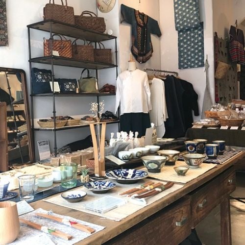 さまざまな国から直輸入した手仕事品や服飾雑貨、国内外の作家さんによるハンドメイドの物から自然派美容雑貨まで幅広く取り扱っています。