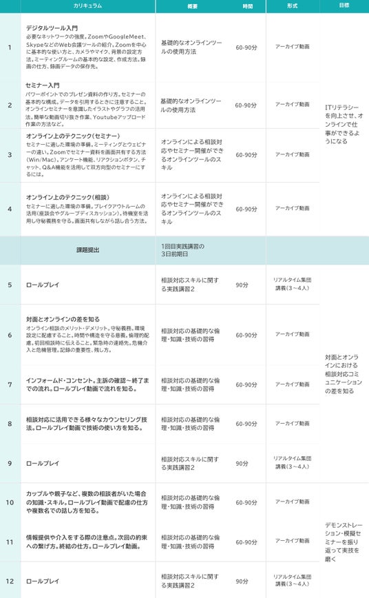 4月2日(水)・11日(金)のオンライン説明会にて説明を行う準備を進めていましたが、説明会の参加を検討している方々からのカリキュラムを知りたいという声にお応えして、先行公開致しました。より具体的な内容や受講の流れなどは説明会にてお伝えしますので、ぜひご参加ください。