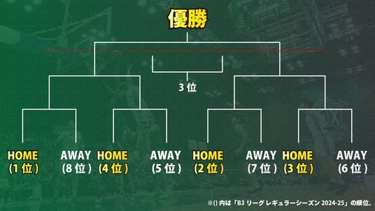 ※「B3 PLAYOFFS 3rdPLACEGAMES 2024-25(※3位決定戦)」はB2昇格クラブを決定する必要がある場合にのみ開催され、その条件を満たした上で「B3 PLAYOFFS SEMIFINALS 2024-25(※準決勝)」で2敗し、なおかつ対戦クラブよりも「B3リーグ レギュラーシーズン 2024-25」で上位となる場合に「B3 PLAYOFFS 3rdPLACEGAMES 2024-25(※3位決定戦)」ホーム開催