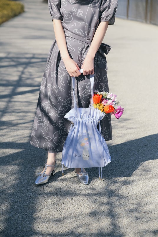 そのほか、バラやダリアのフラワーアートを散りばめたセットアップで楽しめるシャツとスカート、カラフルな花のイラストをフロントにあしらった巾着型バッグもご用意しております。