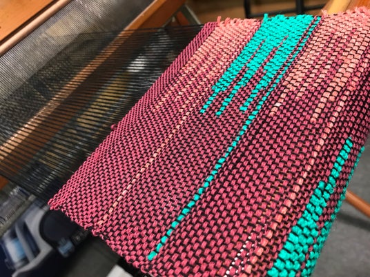NOBO+ORIとは 廃棄予定ののぼり旗を横糸に使用したた裂き織りです