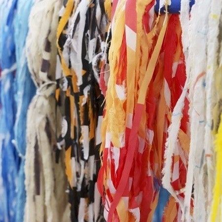 8mm幅に裂いたのぼり旗。NOBO+ORIは洗浄・消毒、裂く、織るの過程があり、障がいの特性に応じて仕事を分配