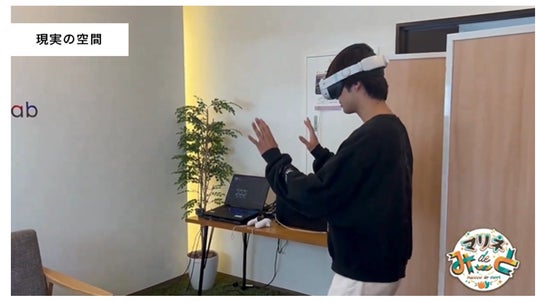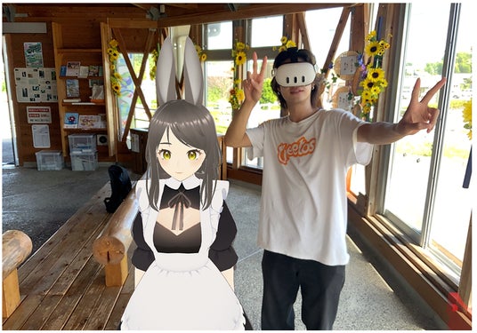一見何もない空間だが、ゴーグルを着用しているとVTuberが目の前に現れて交流が出来る
