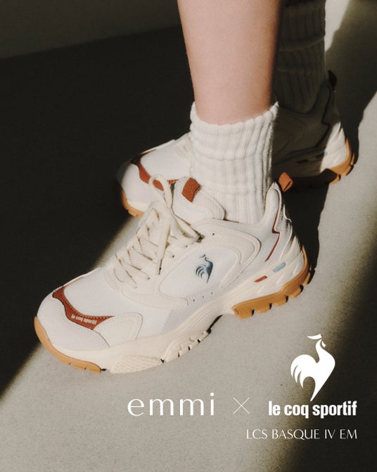 株式会社マッシュスタイルラボ(東京都千代田区/代表取締役社長 近藤広幸)が展開する、デイリーウェアおよびウェルネス&トレーニングウェアを手掛けるレディースブランド「emmi(エミ)」はフランス生まれのスポーツブランド「le coq sportif(ルコックスポルティフ)」とのコラボレーションシューズを4月11日(金)12:00よりオフィシャルオンラインストアおよびECデパートメントストア「USAGI ONLINE(ウサギオンライン)」で先行予約開始、emmi全国直営店舗では4月24日(木)より発売いたします。※無くなり次第終了となります。予めご了承ください。(emmi公式ホームページ: http://emmi.jp/ )