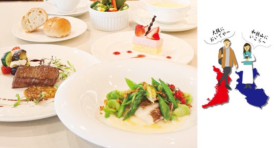 JR西日本ホテルズで開催する「大阪・関西万博へ行こう!ごっつ旨い大阪グルメフェア」の商品です。口溶けの良い大阪産なにわ黒牛のもも肉に金山寺味噌を合わせた料理や和歌山産の紀州梅まだいを使用した蒸し料理がメインとなっております。