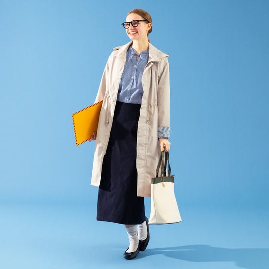 レイヤードスタイルで色の組み合わせを楽しんだら、雨の日も気分は晴れ。