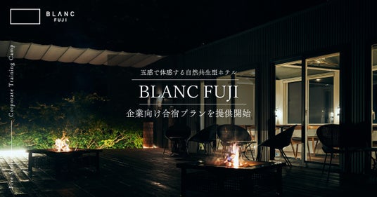 自然共生型ホテルを運営する株式会社BLANC(本社:東京都港区、代表取締役:山中 拓也、以下「当社」)は、BLANC FUJI(ブランクフジ、山梨県富士吉田市)にて企業・団体向けの合宿プランを提供開始しました。