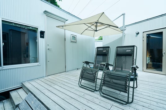 棟内設備:風呂トイレ、リビングスペース、デッキスペース、エアコン、ベッド