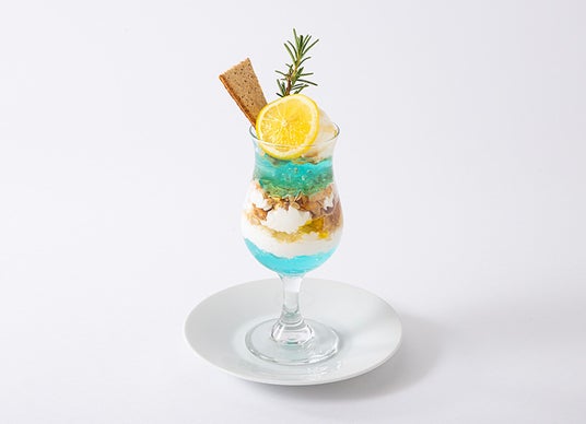 レモンとヨーグルトアイスをのせた食感も楽しいゼリーパフェ。