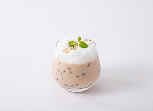 フォームをのせたほんのり甘いアイスミルクティーラテ。