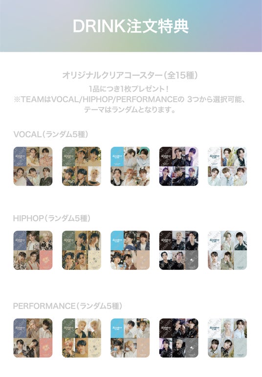 CAFEでDRINK MENUをご注文された方に「オリジナルクリアコースター(全15種)」を1品につき1枚プレゼント。
