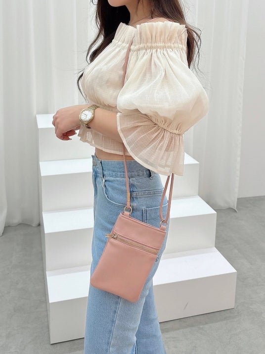 スマートフォンやカード類、リップなどが入るコンパクトなサイズ感で、ちょっとしたお出かけにぴったりのアイテム。オフホワイト・シルバー・ソラリアプラザ店限定のピンクから、お好みのカラーをお選びいただけます。