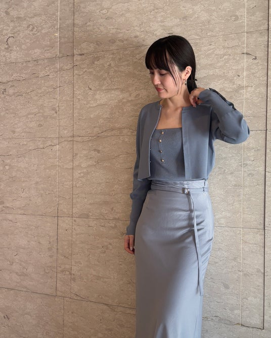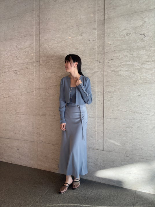 福岡のお客様への感謝の気持ちを込めて、ここでしか手に入らない限定アイテムをご用意いたしました。着回し力抜群なアンサンブルと女性らしい落ち感が魅力のサテンスカート、ワントーンでのスタイリングもおすすめです。