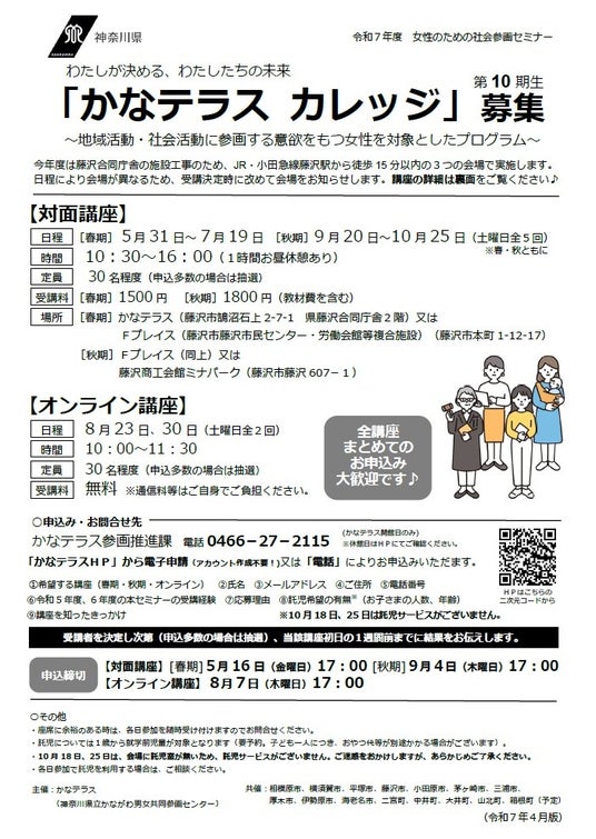 令和7年度 女性のための社会参画セミナー「かなテラス カレッジ」の受講生を募集します!