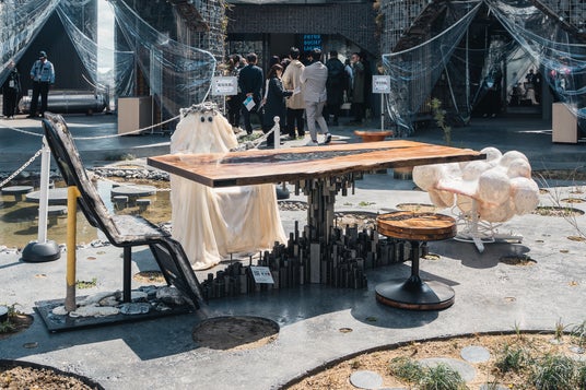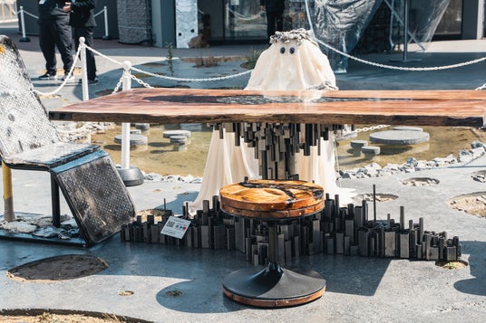 これらのテーブルやスツールは、大阪・関西万博会場西側のフューチャーライフヴィレッジ内に設置されており、誰でも利用することができます。