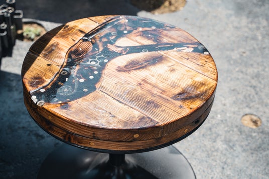 本プロジェクトでは、こうした端材や廃材を活用し、大阪・関西万博内で使用されるテーブルとスツールを製作しました。プロジェクトには当社のほかに、同じく製造業を営む株式会社小泉製作所(大阪府堺市)、株式会社オーツー(大阪府八尾市)、株式会社河辺商会(大阪府堺市)が参画し、金属の削りチップやポリカーボネートの端材、ボタンのフレームなど、多様な廃材を集めました。さらに、美和いちこ氏、高田雄平氏という2名のアーティストも加わり、職人の技術とアーティストのデザインを融合させた、個性的でありながら実用性のある作品となりました。既存の素材を再利用するだけでなく、そこに新たな命を吹き込み、新しい価値を創出することが本プロジェクトの大きな目的となっています。