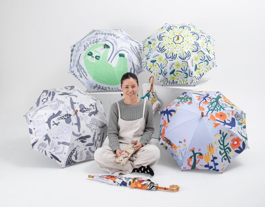 emoemoブランドを展開するアーティスト神谷可奈子が描くキュートな動物が踊る傘「AARA×emoemo」が誕生。