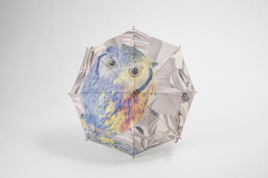 一枚絵の手書きフクロウが描かれた麻の日傘