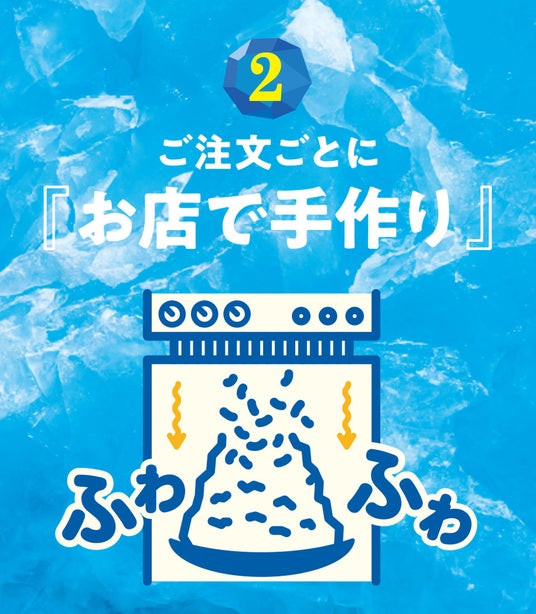 ジョイフルの「かき氷みるく」は、定番フレーバーのいちごから昨年好評をいただいたシャインマスカットと山梨産白桃が一緒になった、新フレーバーのシャインマスカット&山梨産白桃まで、全5種類の「かき氷みるく 」をお楽しみいただけます。また、48時間かけて作り上げた純氷を薄くふわふわに丁寧に削り、牛乳とクリームのフレッシュな甘さが特徴です。