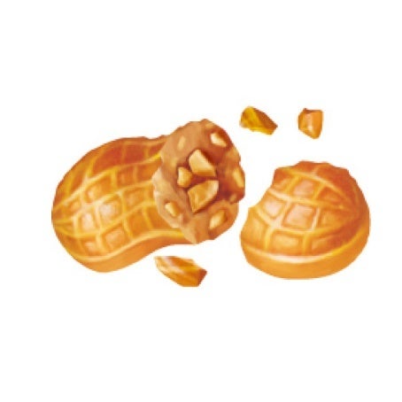 ナッツボンは、焙煎したピーナッツを使用したピーナッツ型のクランチキャンディです。キャンディ層、砕いたピーナッツを練り込んだキャンディ層、砕いたピーナッツの層の3層構造でカリッと口の中で砕ける軽いクランチの食感と、口いっぱいに広がる香ばしいピーナッツキャラメルの風味をお楽しみいただけます。