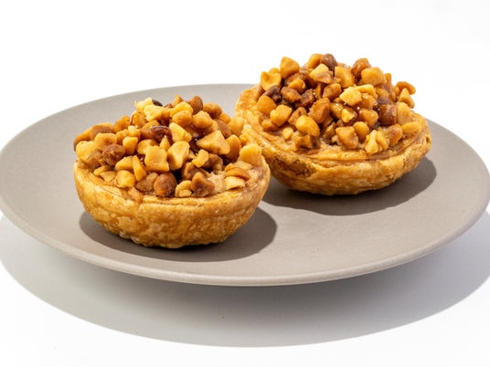 マカダミアナッツとあんこを掛け合せて「マカダミアん」。求肥とつぶあん入りのアーモンドクリームを、パイのようなサクサク生地にのせて焼き上げました。バターとあんこの風味、ナッツの香ばしさが広がる、カリ!サク!モチ!な和洋の美味が融合した新感覚タルト。一度お買い上げいただいた方からのリピートがとても多く、No.1も納得のおいしさです。