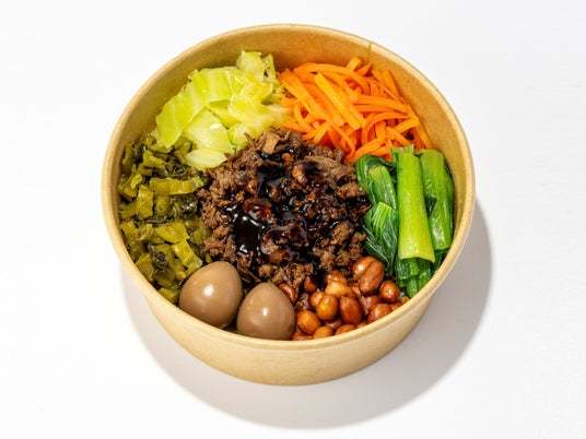 台湾料理の定番「魯肉飯(ルーローハン)」が堂々のNo.1。柔らかい豚角煮と豚ミンチの2種類の豚肉で作る、こだわりの魯肉。八角、ローリエで香り付けした本格的な味付けです。手のひらサイズで持ち歩きやすく、スプーンで移動中の車内で食べやすいのもポイント。彩り野菜を添えており、忙しいビジネスワーカーにもおすすめの一品です。※数量限定:1日60点