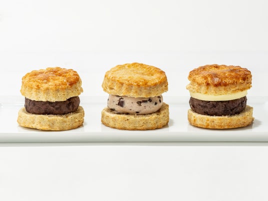 全粒粉と天然塩を使用したプチプチとした食感のスコーンに、3種のあんを挟みました。あんこのみたっぷりの「ひとり」、あんことバターが混ざった「であい」、あんことバターが二層になった「わかれ」の3種類。老舗製餡所こだわりのあんことバターのさまざまな関係性をお楽しみください。