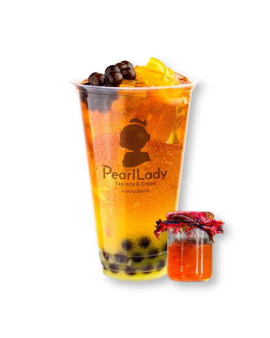 オレンジママレードティーパールレディのドリンクは、パディントンの大好物オレンジママレードを使用。