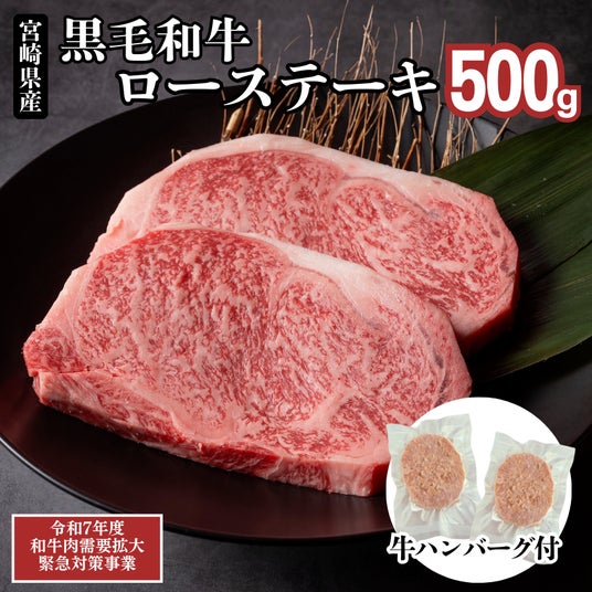 県産和牛ロースステーキ2枚(500g)+ハンバーグ2個【キャンペーン特別価格】5,490円!(税込)