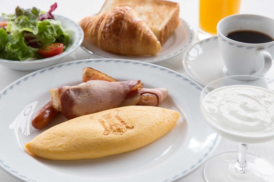 川奈ホテルのエンブレムが入ったオムレツが人気の洋定食