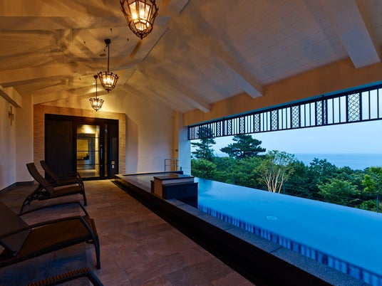 露天風呂をはじめプライベートバスやリラクゼーションルームを備えた多機能型温浴施設。目の前に広がる美しい海からの心地よい海風や広大な自然を感じながらご入浴できます。