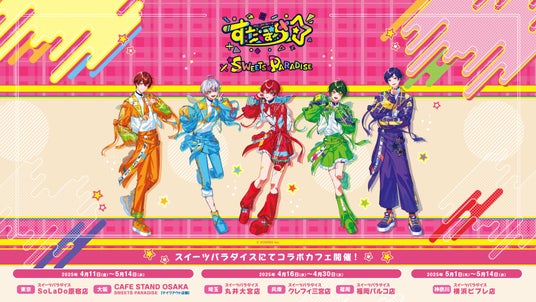 待望のコラボ再び!実力派5人組歌い手グループ「すたぽら」×「SWEETS PARADISE」コラボカフェ第2弾が本日4月11日(金)よりスタート!