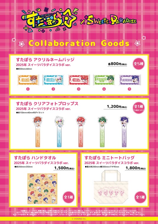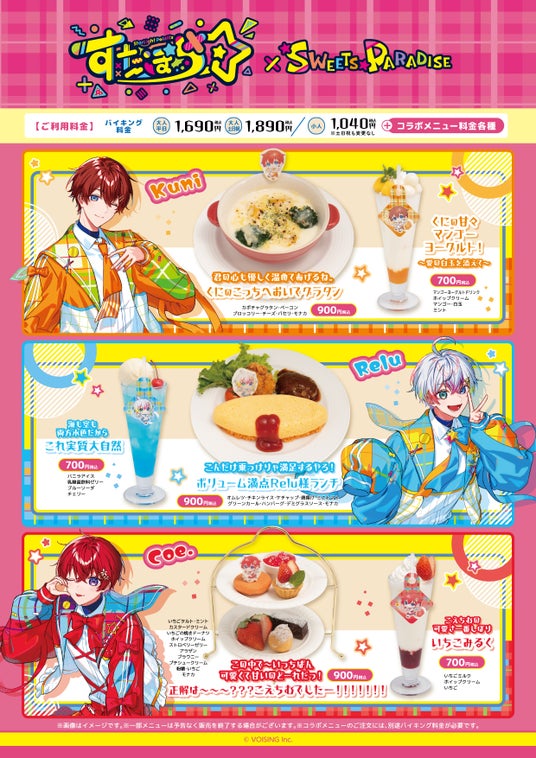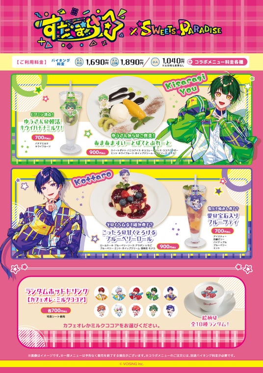 株式会社VOISING(本社:東京都港区、代表者:ないこ、以下、VOISING)所属の実力派5人組歌い手グループ「すたぽら」とSWEETS PARADISEとの2回目となるコラボカフェ「すたぽら4周年記念×SWEETS PARADISE」が本日2025年4月11日(金)よりスタートいたします。4月2日に4周年を迎えた「すたぽら」の周年を祝う特別なイベントであり、メンバーの個性を存分に表現したオリジナルのコラボメニューや、ファン必見の限定グッズをお届けする、まさに夢のような空間が広がるコラボイベントとなっております。