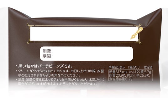 「ジャンボシュークリーム(ガーナ)」は、なめらかなチョコカスタードとチョコホイップクリームが、歯切れと口どけのよいシュー皮と一緒に口どけていく一体感を楽しめます。パッケージの裏側にはメッセージスペースを設けました。普段口に出すのは照れてしまう気持ちを、手書きして伝えてみてはいかがでしょうか。
