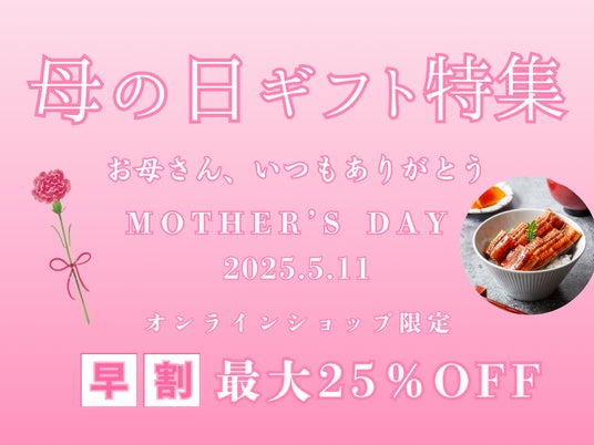 2025年4月11日(金)より、鰻楽グループ(本社:宮崎県宮崎市塩路2300、代表取締役社長:大森龍太郎)は、公式オンラインショップ限定で「母の日キャンペーン」を開催いたします。
