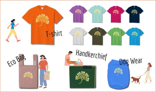 去年に引き続き、恒例のオリジナルチャリティTシャツを販売します。また今年は、エコバッグやハンカチ、ワンちゃん用のTシャツなども用意しています。