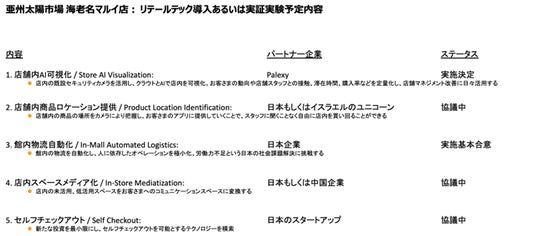 また、今回の海老名マルイ店でも引き続き複数のリテールテックの活用、実証実験、開発を予定しています。