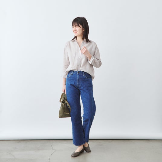 リネンの生地にハリ感があるため、襟の立ちや、袖をまくった感じ、全体のフォルムが簡単に決まりやすいです。