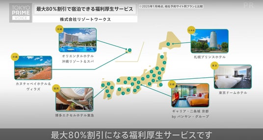 株式会社リゾートワークス(本社:沖縄県那覇市 代表取締役:柳田将司、以下リゾートワークス)は、最大80%割引で宿泊できる福利厚生サービス「リゾートワークス」の動画CMを、4月14日(月)よりゴルフカートサイネージメディア「Golfcart Vision(R)︎ powered by Tokyo Prime」で放映開始いたしました。