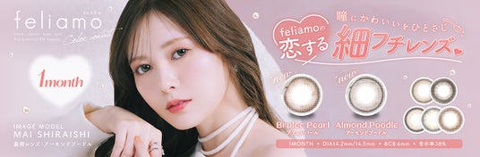 白石麻衣イメージモデルカラコン『feliamo(フェリアモ)』から新色発売決定!"瞳にかわいいをひとさじ(ハート)"恋する細フチレンズ2色が1day&1monthで新登場!