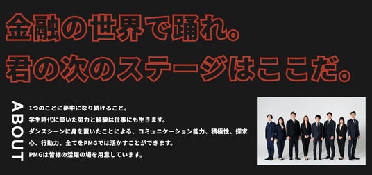 ピーエムジー株式会社はダンス経験者を対象にした専用の採用WEBサイトをオープンし、「マイナビDANCEALIVE 2025 FINAL」のスポンサーを皮切りにダンスシーンから積極的な採用を始めダンスシーンとの取り組みを行ってまいります。
