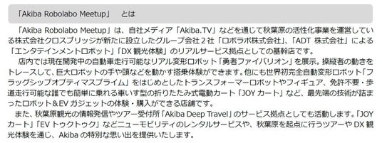 ロボットや電動モビリティの体験販売、秋葉原の観光ツアーや情報発信を行うコミュニティスペース