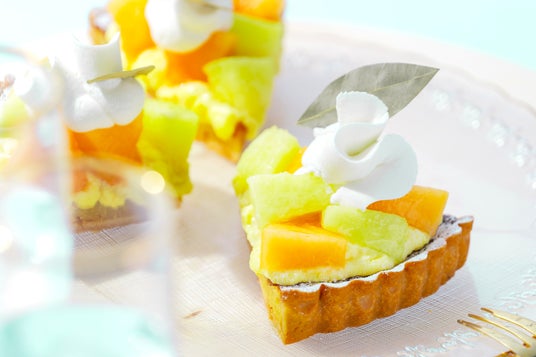 2種類のメロンを盛り付けました。サクッと香ばしいタルトに、メロンの豊かな甘さとフル