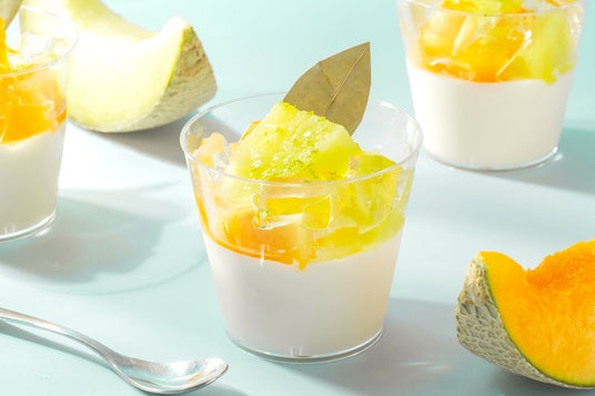 た甘さのカットメロンと、まろやかな杏仁豆腐の異なる食感をお楽しみいただけます。初夏
