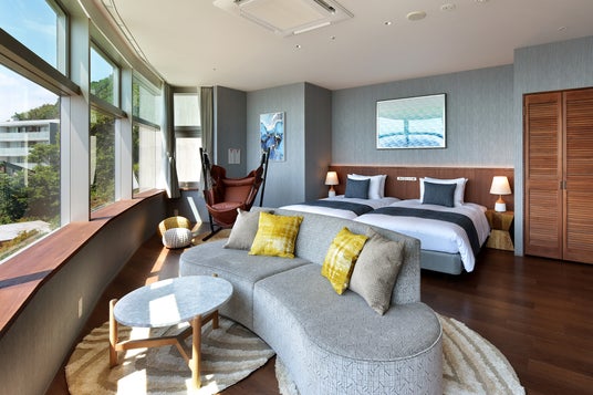 "うみにあいにいく"をコンセプトにしたライフスタイル型リゾートホテル。 オープンより5年を迎える当ホテルは、美しい水平線を一望できる客室と、グループ利用に人気の「Bunk room」と呼ばれるドミトリーの両方の魅力を兼ね備えており、たくさんのお客さまに愛されてまいりました。 最上階には人工温泉「Horizon Onsen」をご用意。湯船につかりながら江の島や富士山を望めます。 1階の「SANDBAR」は、宿泊のお客さま以外もご利用いただくことができ、地元の食材を使用した食事や、ボトルビール、オリジナルカクテルも豊富にご用意しております。 都心から約1時間のリゾートで、雄大なサンセットを眺めながら優雅なひと時をお過ごしください。